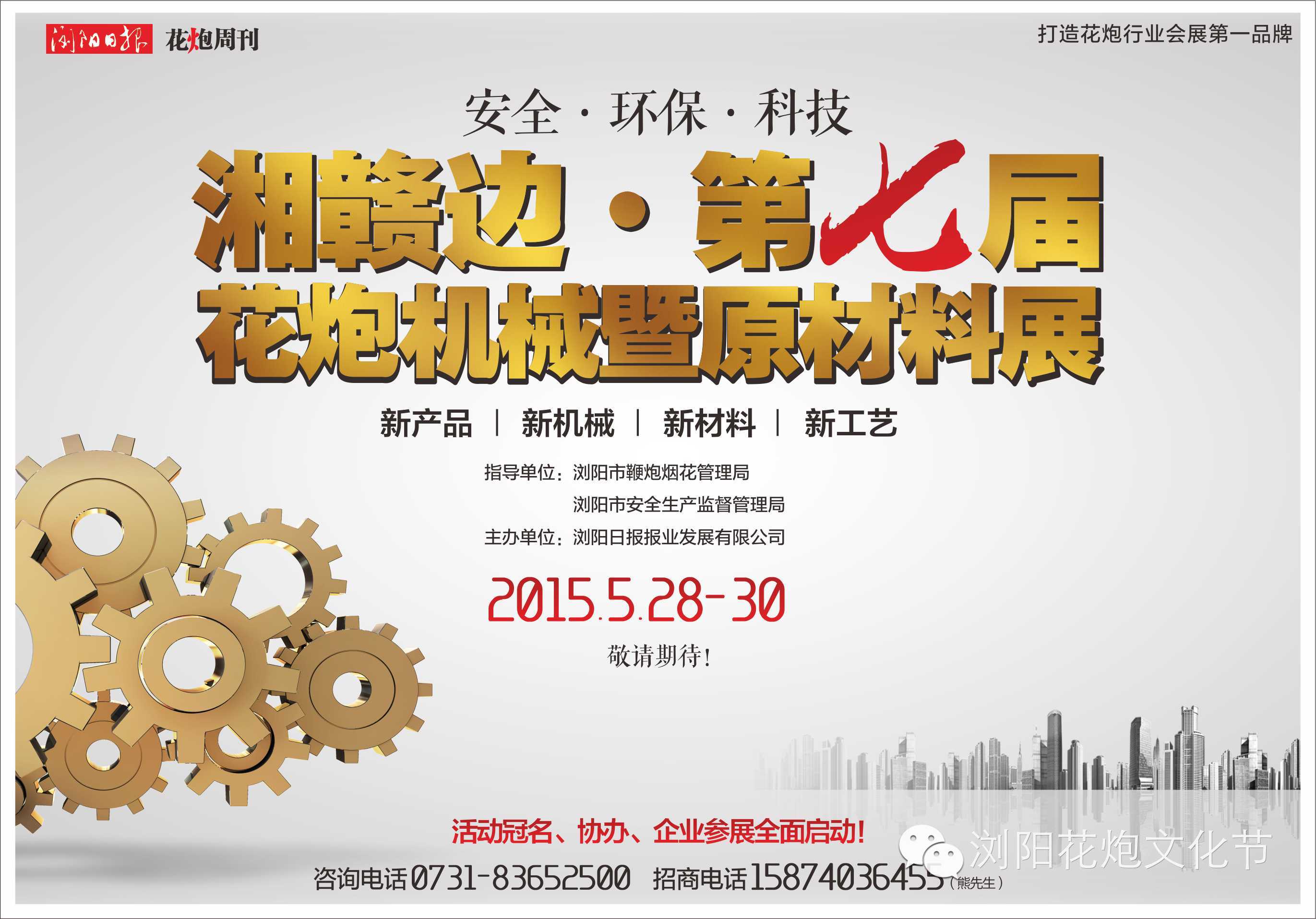 旨在展示煙花爆竹行業(yè)安全環(huán)保最新成果,推進(jìn)機(jī)械化、專業(yè)化、集團(tuán)化、信息化和安全型、環(huán)保型“四化兩型”戰(zhàn)略進(jìn)程,塑造品牌,引導(dǎo)消費(fèi),打造行業(yè)標(biāo)桿,展示行業(yè)形象,在5月28-30日組織舉辦第七屆花炮機(jī)械暨原材料展,聯(lián)合湘贛邊花炮主產(chǎn)區(qū),集合產(chǎn)業(yè)上下游企業(yè),以活動(dòng)為載體,以展示為平臺(tái),推出一批新機(jī)械,展示一批新材料,推薦一批新產(chǎn)品。